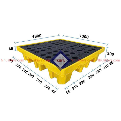 Pallet nhựa chống tràn dầu 1300x1300x300 mm ( Loại 4 Phi )
